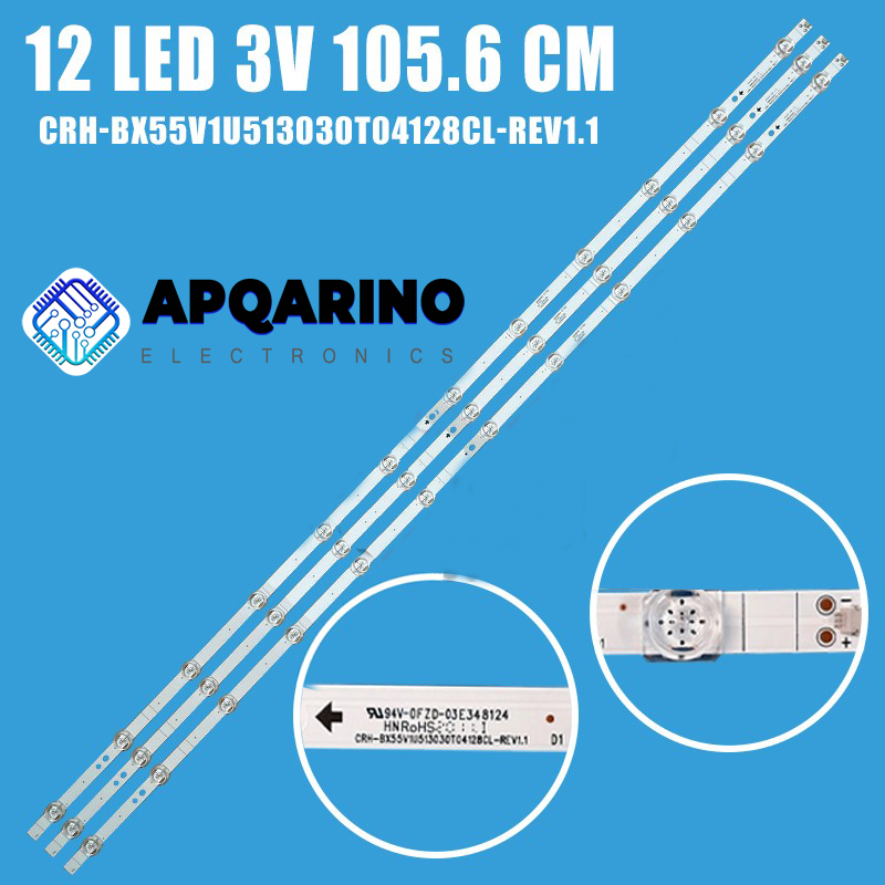 مسطرة 12 ليد 3 فولت 105.6سم عدسة مربعة CRH-BX55V1U513030T04128CL-REV1.1
